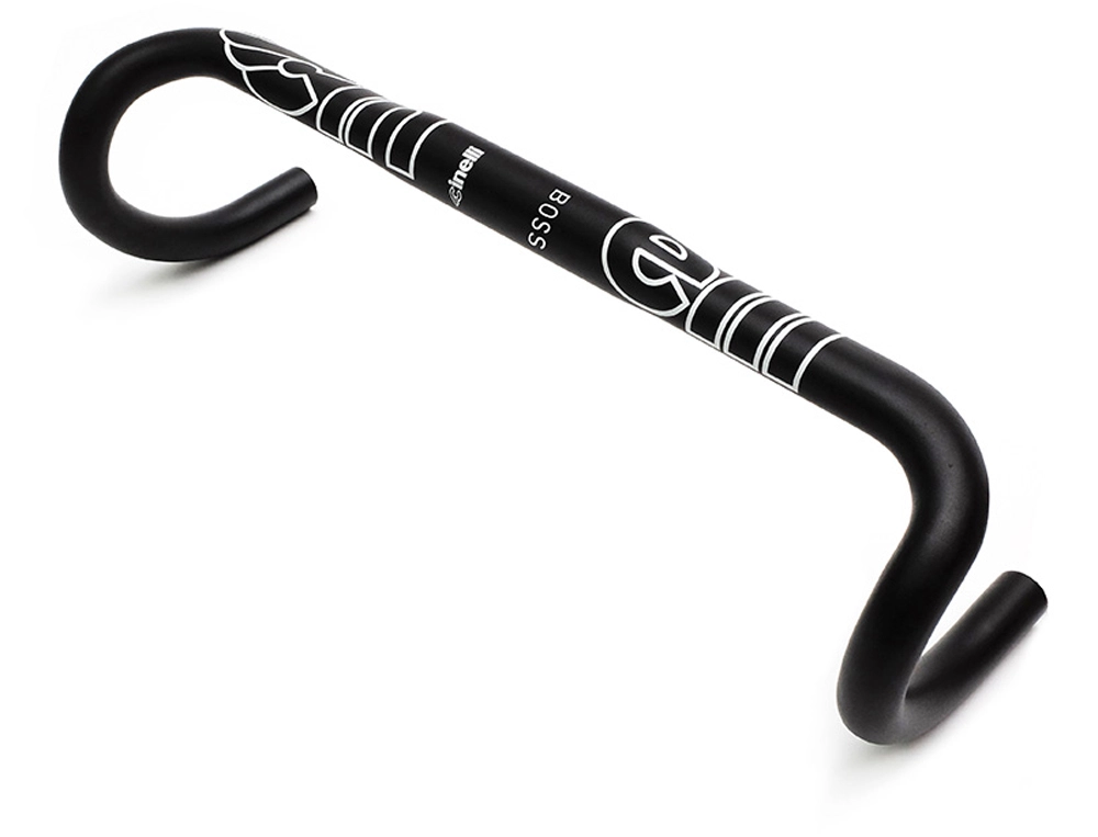 Le Cinelli Boss est un guidon de vĂ©lo de course en aluminium d’Ă©paisseur variable, dotĂ© d’un profil particulièrement ergonomique et d’un reach d’Ă peine 70 mm. C’est le guidon idĂ©al pour tous les cyclistes de course et les gravel bikers qui recherchent la vitesse et prĂ©fèrent un style de conduite offensif.