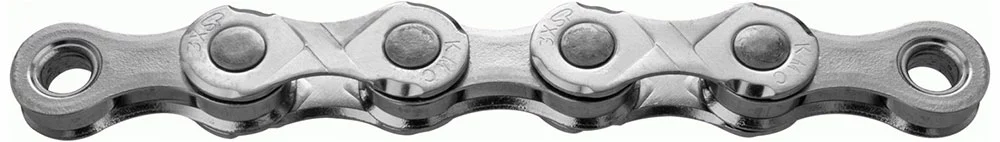 La chaîne pour e-bike KMC E11 avec surface nickelée et 122 maillons pour e-bike mid-motor avec un levier de vitesse à 11 vitesses.