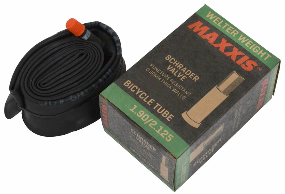 Chambre à air de vélo Maxxis WelterWeight de haute qualité avec une épaisseur de paroi de 0,80 mm, pour une utilisation fiable en BMX, XC et freeride.