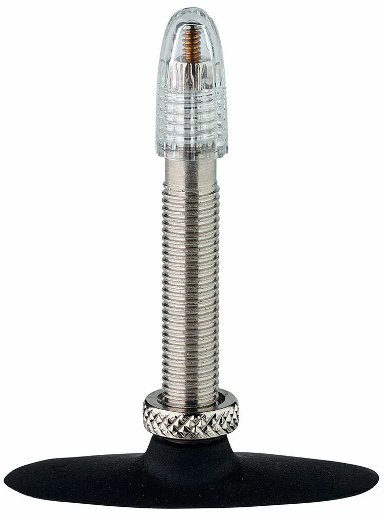 Il existe trois types de tubes qui sont devenus des standards du marché et il est difficile de faire une recommandation particulière. L’aspect le plus important est que la valve s’adapte au trou de valve de la jante et qu’une pompe appropriée soit disponible. Contrairement à la croyance populaire, les grandes différences de rétention d’air font désormais partie du passé. Dans tous les cas, toutes les valves Schwalbe offrent d’excellentes performances et sont adaptées à une utilisation à haute pression. La valve classique de vélo ou valve Dunlop reste la plus répandue dans le monde. La plupart des cyclistes la connaissent. Le noyau de la valve peut être facilement remplacé et l’air peut être libéré très rapidement. Le montage d’une chambre à air équipée d’une valve Dunlop est plus délicat, car il faut retirer le noyau de la valve et le contre-écrou afin de faire passer la valve dans le trou de la valve. Le gonflage n’est possible que lorsque le noyau et l’écrou sont remis en place. Avec les valves Dunlop traditionnelles, il est impossible de vérifier la pression de gonflage. Cependant, la valve spéciale Schwalbe Dunlop permet un retour d’air, de sorte qu’il est maintenant possible de vérifier la pression de gonflage avec un manomètre Airmax. Auparavant, il était difficile de gonfler un tube avec une valve Dunlop, mais avec les noyaux de valve modernes d’aujourd’hui, ce n’est plus le cas. La valve Sclaverand est plus étroite que les autres valves (6 au lieu de 8 mm). Elle nécessite un trou de jante plus petit et est donc particulièrement bien adaptée aux jantes étroites des vélos de course. Elle est également plus légère d’environ 4-5 g qu’une valve de voiture ou une valve Dunlop. Elle peut être verrouillée manuellement avec l’écrou moleté. Avant de gonfler, il faut desserrer l’écrou moleté. Les premiers utilisateurs rencontrent souvent des problèmes. De plus, la fine tige supérieure peut être facilement pliée lors de la fixation et du retrait du connecteur de la pompe. Attention : Sachez que l’utilisation de tubes à valve Sclaverand sur des jantes avec des trous de valve plus grands entraîne souvent un arrachement de la valve lorsque les bords métalliques tranchants autour du trou de valve coupent la tige de valve du tube. La valve Auto/Car peut être gonflée très facilement dans une station-service et ne pose aucun problème. Les anciennes pompes à vélo, ainsi que les simples pompes à vélo, ne sont pas compatibles avec les valves auto.