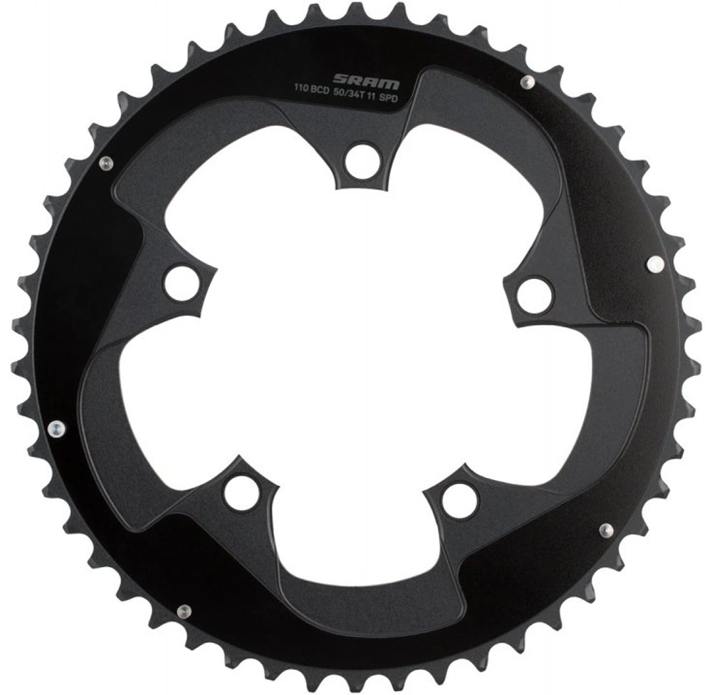 Plateau de rechange avec un cercle de trous de 110mm et 50 ou 52 dents pour les manivelles de vélo de course SRAM 11 vitesses YAW. Remplace ton plateau usé ou échange-le pour modifier le rapport de transmission des vitesses.
